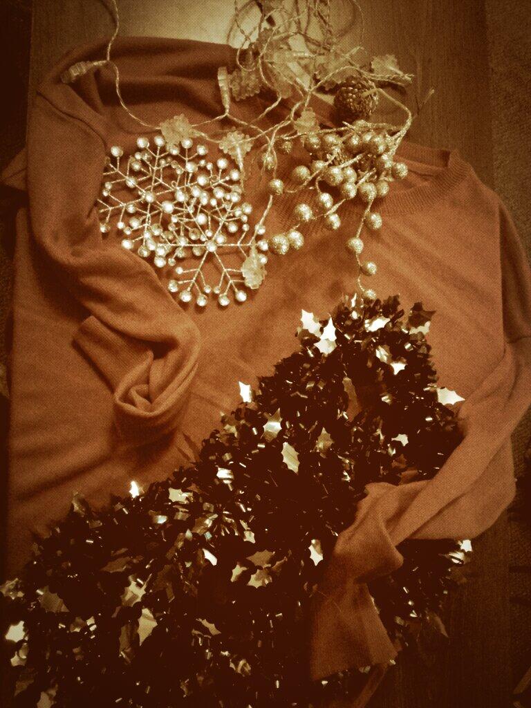 My plan is to customize my own jumper every week. Being something done for charity it wouldn't make sense to spend loads of money on it so I got myself a boring red jumper and am using my own Christmas decorations to make it a festive garment. I might add the odd decoration from a charity shop here and there.